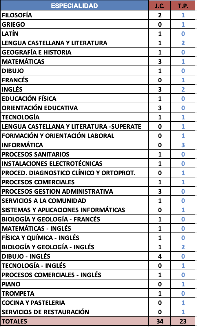Acto de adjudicación voluntario de interinos de Secundaria del 15 de mayo