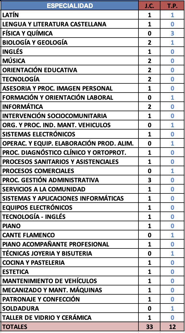 Acto de adjudicación VOLUNTARIO de interinos de Secundaria del 30 de enero