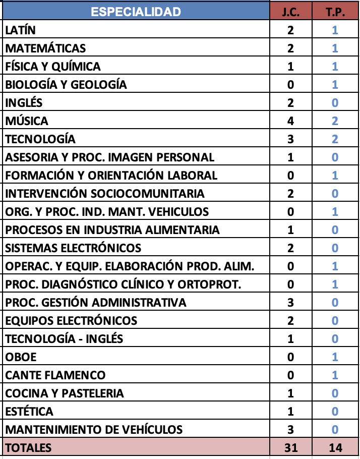 Acto de adjudicación VOLUNTARIO de interinos de Secundaria del 6 de febrero