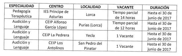 Las vacantes ofertadas para este acto son: