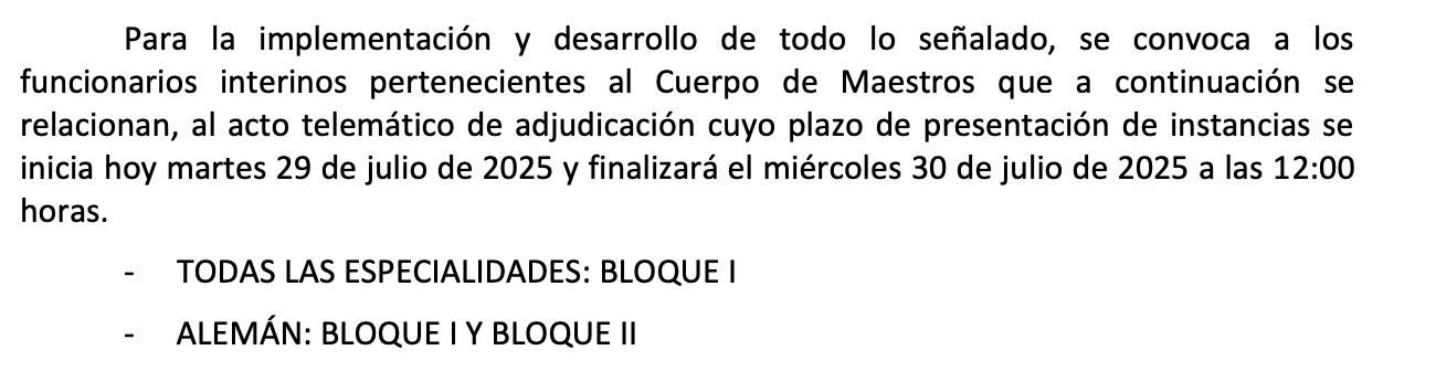 Plazo de presentación de instancias: hasta las 11h de mañana 29 de julio 2025.