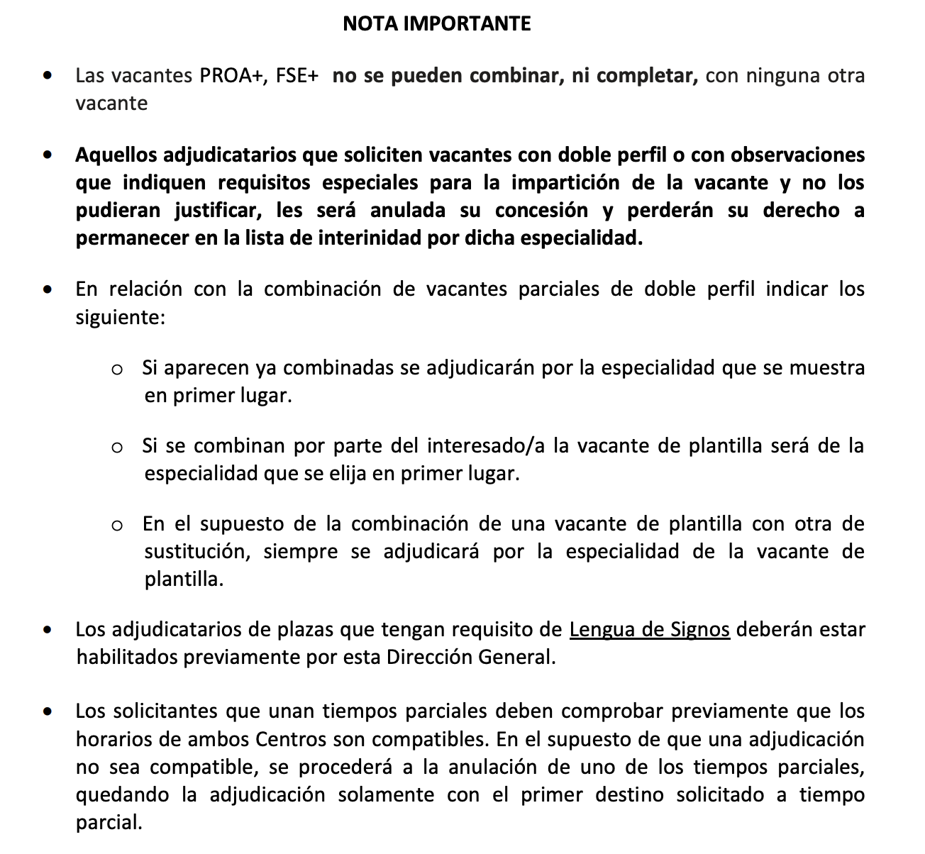 IMPORTANTE: Quienes obtengan una vacante de forma DEFINITIVA en un centro de actuación educativa preferente, NO PODRÁN PARTICIPAR EN ADJUDICACIONES POSTERIORES.