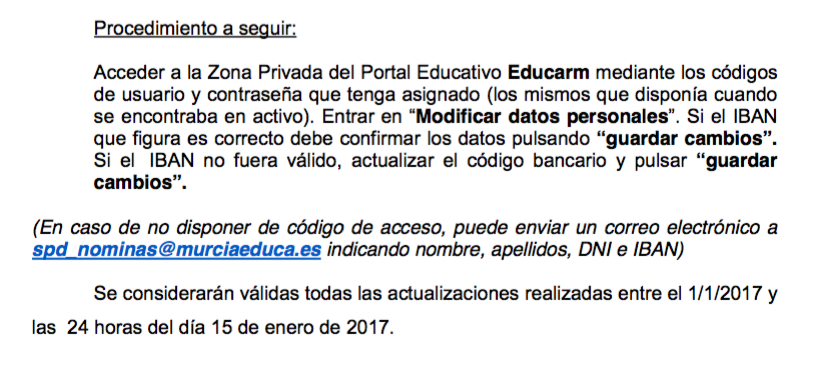 La Consejería de Educación ha publicado una nota informativa sobre el procedimiento a seguir para la devolución del tramo 3º de la paga extra de diciembre 2012 para personal docente no activo en la Consejería de Educación pero que sí lo estaba en aquel año y tuviera derecho a percibir entonces la paga extra de diciembre 2012.