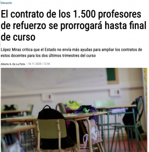 Los docentes contratados como refuerzo por el #Covid19 estarán hasta final de curso