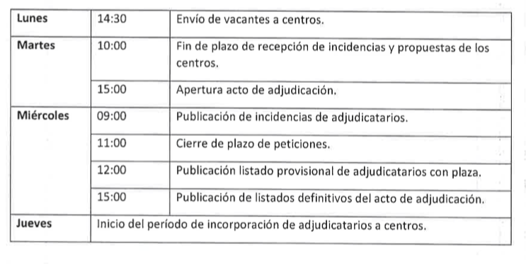 La Consejería de Educación ha publicado una nota informativa sobre las próximas adjudicaciones de interinos de Primaria y Secundaria, estando previsto que esta semana: