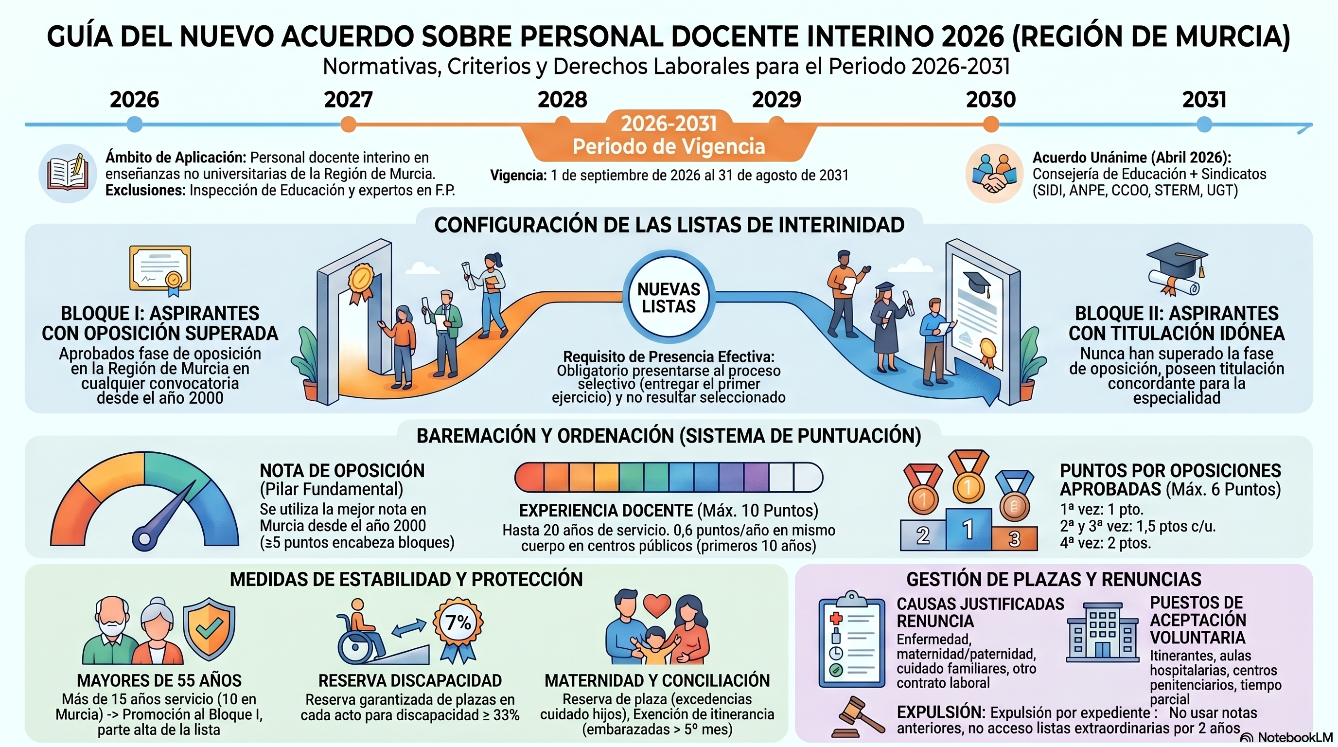 Ya es oficial. La Consejería de Educación ha publicado en el BORM el nuevo acuerdo de interinos que estará vigente en la Región de Murcia del 1 de septiembre 2026 al 31 de agosto 2031.