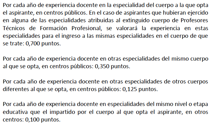 3.- Sigue la valoración de 0.75 puntos por oposición aprobada desde 2012 en la misma especialidad a la que se opta.